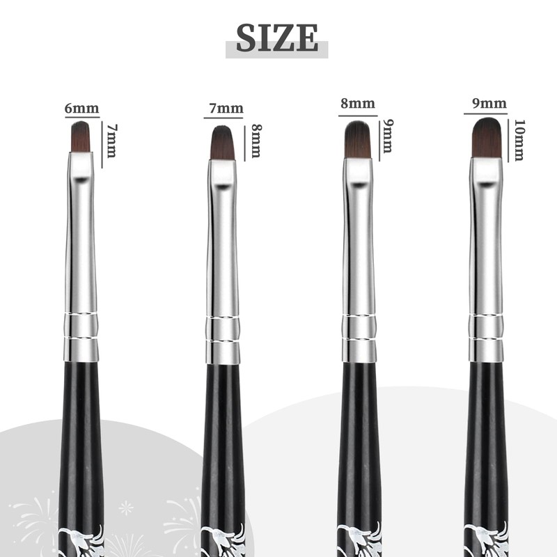 - 4 pinceles de gel de uñas utilizados principalmente para uñas UV y uñas francesas, dibujar exquisitos patrones pintados en 3D, cuadros y flores, etc. Ideal para pintura de uñas, uñas de gel UV, uñas de poligel, etc. El diseño de pincel ovalado hace que la aplicación sea suave del lecho de las uñas. Adecuado para extensiones de uñas, poligel, gel UV y pintura de esmalte de uñas