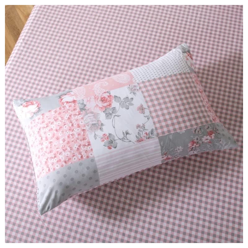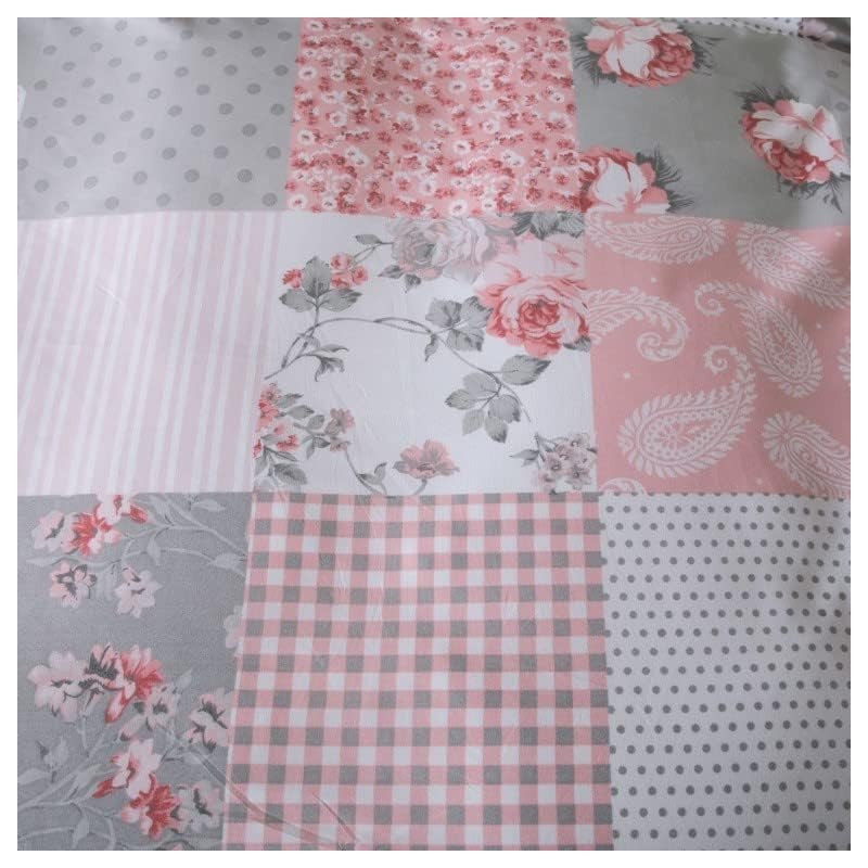 BQC Duvet Cover Set 3 Piece Microfibre Quilt Cover with Pillow Cases, Ultra Soft Easy Care Machine Washable Bedding Set (Patchwork Floral Grey, Double)