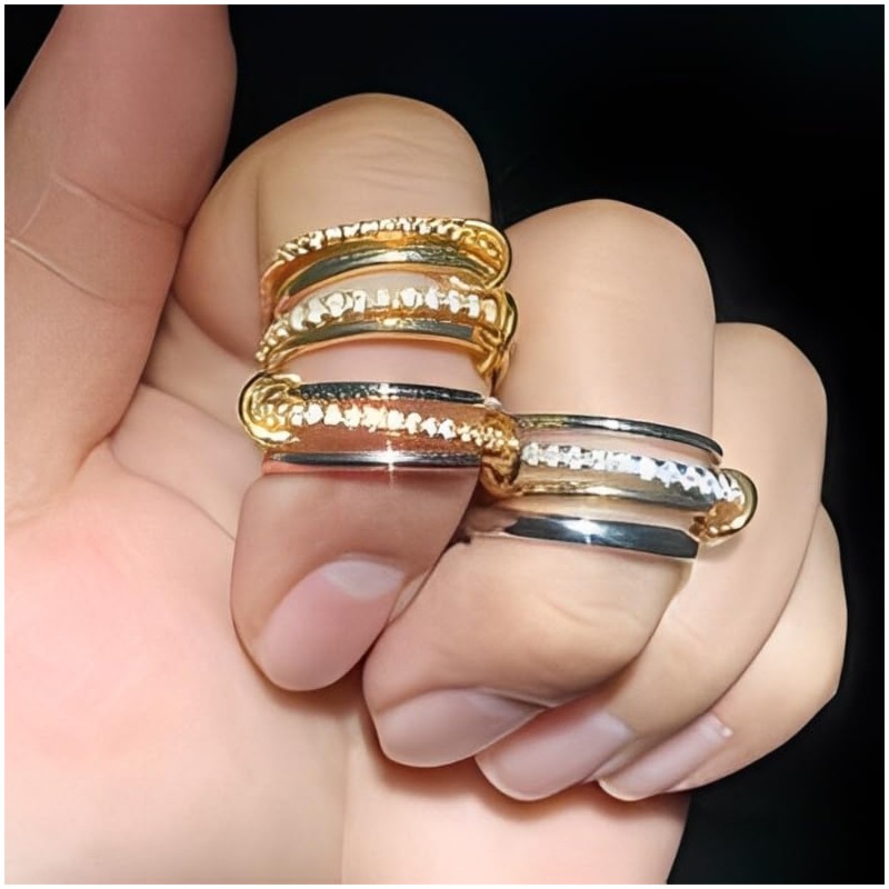 - 【Stackable Ring of Gold and Silver】This stackable ring consists of a ring and a cubic zirconia ring, connected by small golden circles. Stackable rings are fashionable and luxurious, designed to be your private high-end fashion show at your fingertips