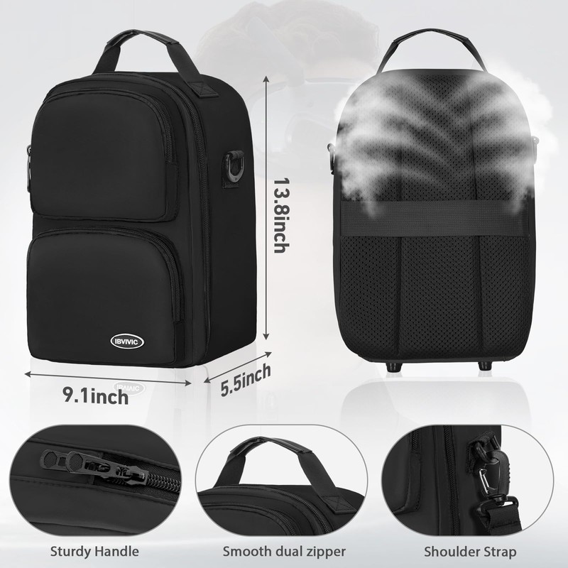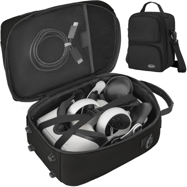 Size:13.78*9.06*5.5 inches. This carrying case is specially designed to be compatible with Meta Oculus Quest 2/Quest 3 VR gaming headsets, touch controllers and other accessories. Note: Bag only, not included any other accessories