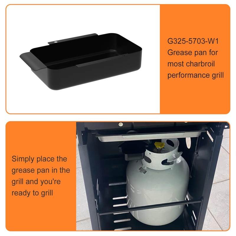 - Grease Pan Replacement Parts for Charbroil Grill Models: 463245017 463347017 463276517 463576017 463346017 463348017 463276517 463242716 463367516 463243016 463675016P1 466242616 466242615 466240115 463242515 469235815 4632213115 and more G325-5703-W1 charbroil performance grill replacement parts
