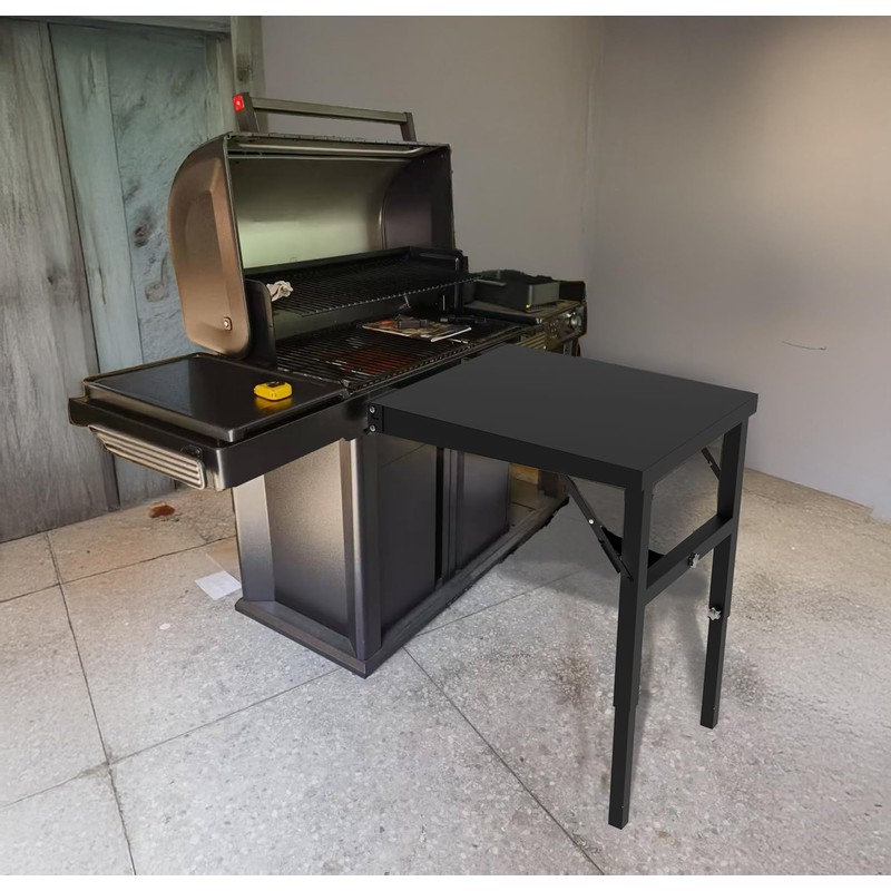 - ❀The folding grill side table for Traeger Woodridge Pellet Grills transitions seamlessly between indoor and outdoor use. Perfect for backyard BBQs or home kitchen prep, its space-saving foldable design adapts to all your culinary needs