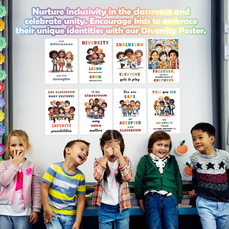 - ENGAGING CLASSROOM DECORATIONS Brighten up your classroom with our engaging inclusion posters and diversity bulletin board decorations. Add a splash of color and positivity with these inspiring, diverse posters.