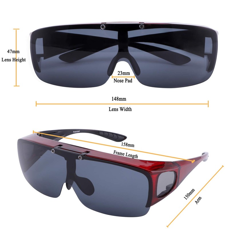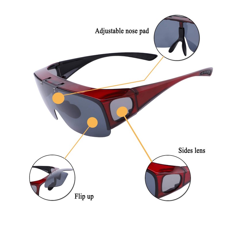 Br'Guras Fit Over Polarized Sunglasses Flip Up Lens for Men and Women (Red, Black)