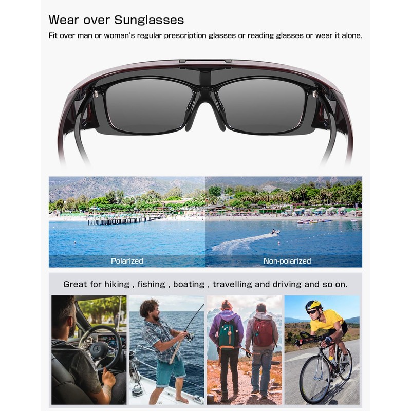 - Multi-use: These matte black over sunglasses makes it great for outdoor sports activities such as driving, fishing, skiing, travelling, hiking, boating.