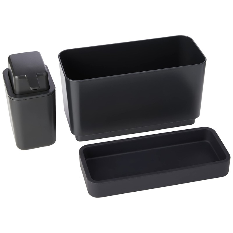 Brabantia Kitchen Sink Organiser Set with Soap Dispenser (Dark Grey) Cloths/Sponge Storage Holder + Refillable Handwash Pump (250ml)