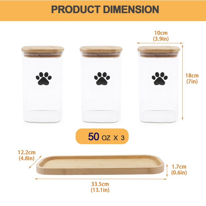 - 【Versatile Pet food storage】-Food safe glass Canister with paw prints.The square dog treat storage containers use wood lids and silicone sealing rings for a better airtight and moisture-resistant space to prevent the food from getting wet and gain longer freshness time. Perfect for pet treats,dog treats,cat treat,dog cookie,dog biscuit,dog kibble,dog jerky.