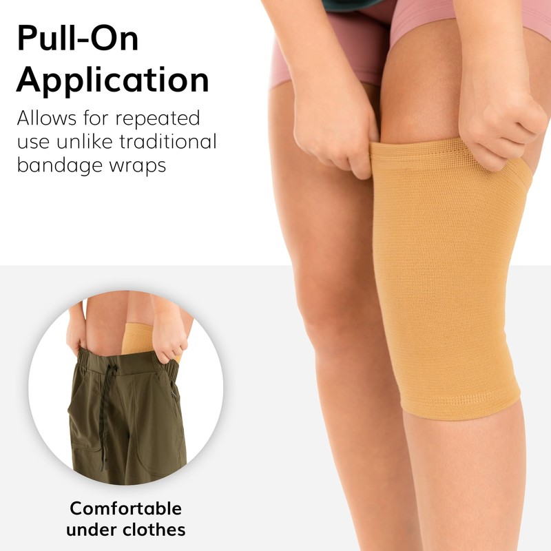 - It’s much easier and quicker to pull on this elastic knee sleeve than to wrap the knee with an ACE wrap.