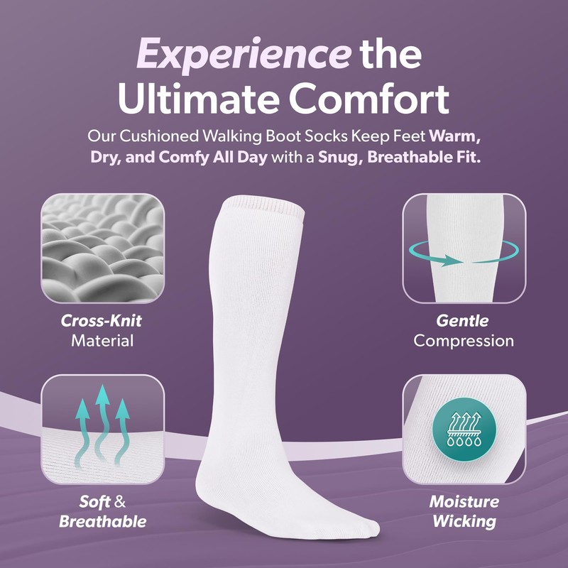 - ONE SIZE FITS MOST: This universal, high top sock (19 inches tall) fits women's and men’s left or right feet and is available in a single or 2-pack option. Compatible with short or tall walking boots.