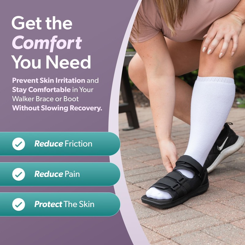 - USE FOR: These socks are intended to help reduce skin irritation while wearing a foot brace or walking boot. However, its mild compression also makes it useful for diabetes, leg fatigue, foot, ankle and leg swelling, circulatory problems, edema, and neuropathy.