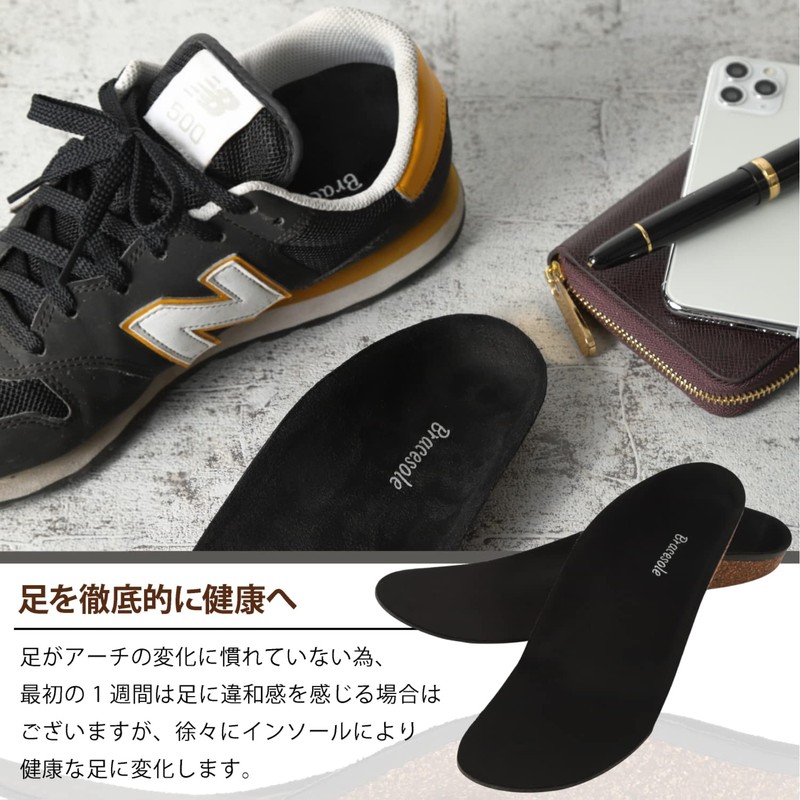 - The insole has a 1.6-inch (4 cm) high arch, and is expected to improve foot fatigue twice as high as other products. This can reduce the burden on your feet during long standing work or exercising