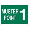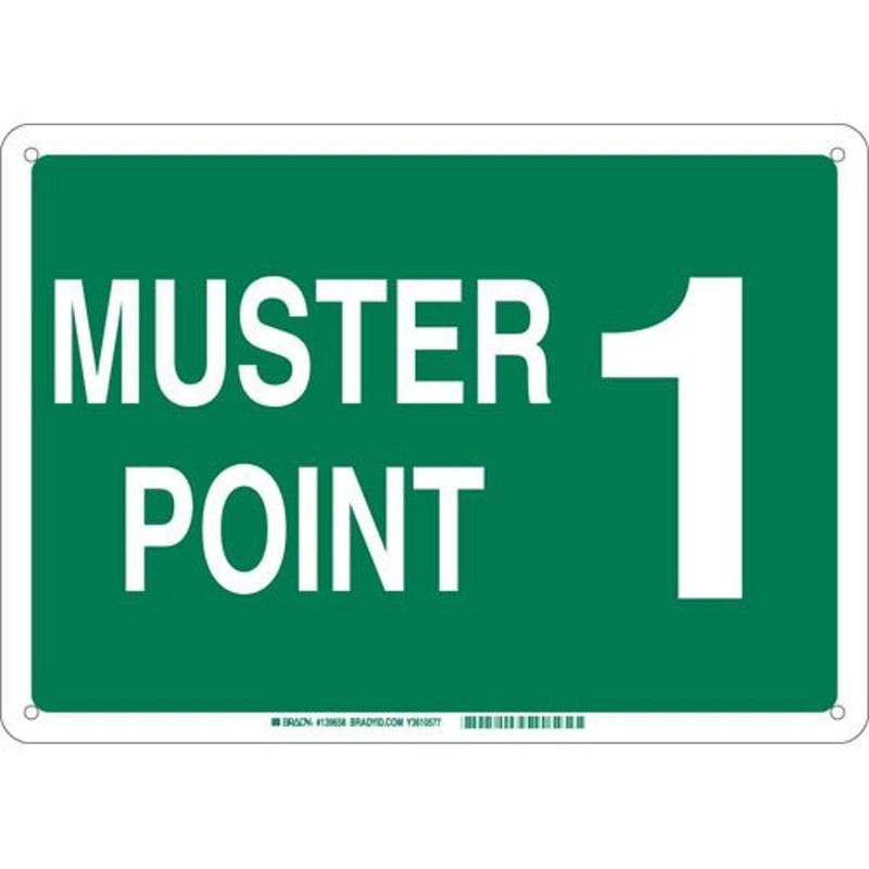Brady 139664 Aluminum "Muster Point 1" Sign, Text, 10" H x 14" W, White on Green