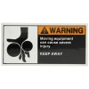 Brady 96159 Self Sticking Polyester Cema Safety Label Orange/White On Black 2 1/2" Height x 5" Width Legend "Moving Equipment Can Cause Severe Injury Keep Away W/ Picto " 5 Labels per Package