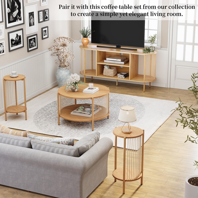 - The natural wooden TV stand is versatile - this modern TV console table can accommodate TVs up to 60 inches. It can be used as a TV stand or a side cabinet, console table, you can put anything you like. (Please keep dry)