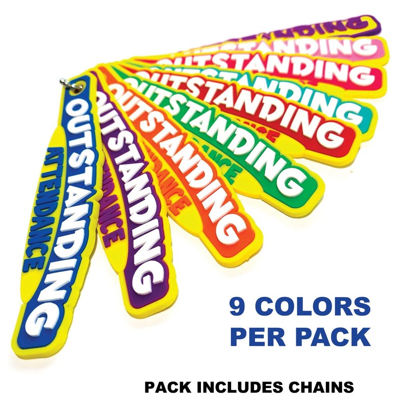 Brag Sticks Outstanding Attendance Value Pack: Wearable Incentives to Increase Student Attendance 90 Sticks (10 Sticks for Each Design) + 50 4" Chains