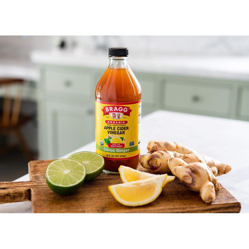 - BRAGG ACV CITRUS GINGER: Boost your energy levels during the day with this tasty citrus ginger ACV ! This zesty apple cider vinegar contains natural ingredients including Mother of Vinegar.