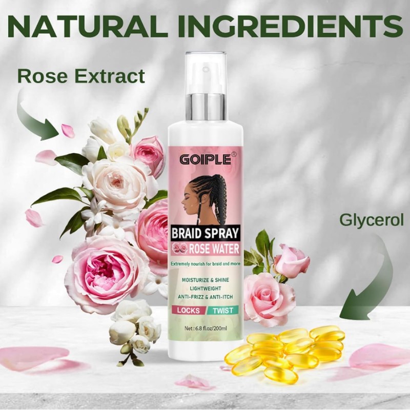 - Rose Braid Spray: Infused with the goodness of rose, our Braid Spray is perfect for maintaining the health and vibrancy of your braids. Also great for protective styles like braids and twists