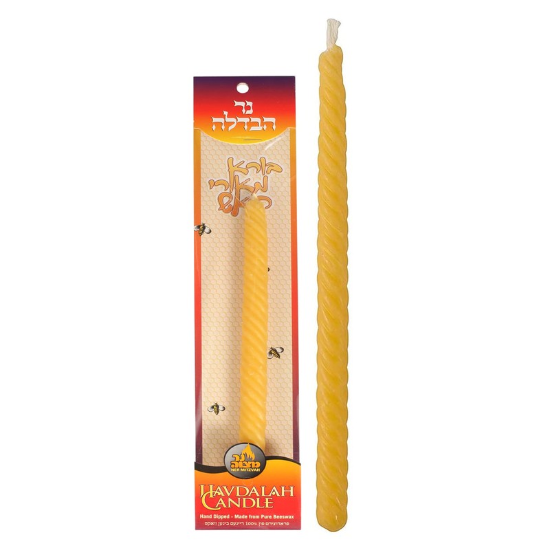 Braided Beeswax Havdalah Candle - Hand Dipped Bees Wax with Extra Thick Round Twist Braid - Shabbat Judaica Gift - By Ner Mitzvah