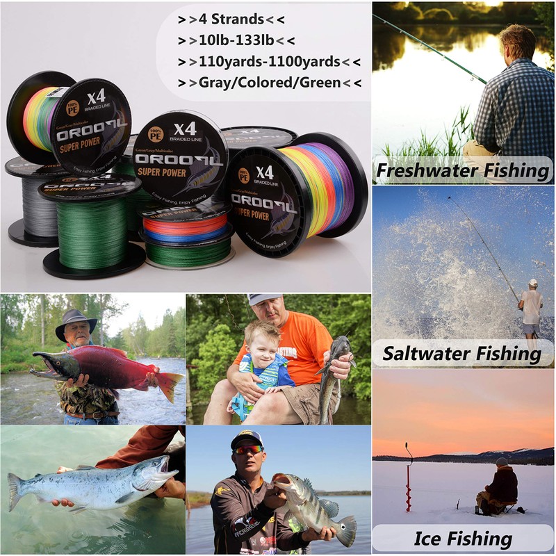 - Multiple choices: OROOTL offers braided PE fish lines in dark green, grey and multi-colours. Each colour has a different size. Whether you want sea fishing, sea fishing, ice fishing, etc., our braided fishing line can accompany you on a wonderful fishing trip.