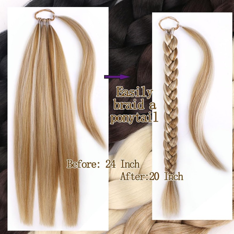 Braided Ponytail Extensions for Women Wrap Around Hair Extensions With Hair Tie Mixed Gloden Ash Blonde Color Natural Synthetic Hair(Mix Golden Ash Blonde, 24 Inch)