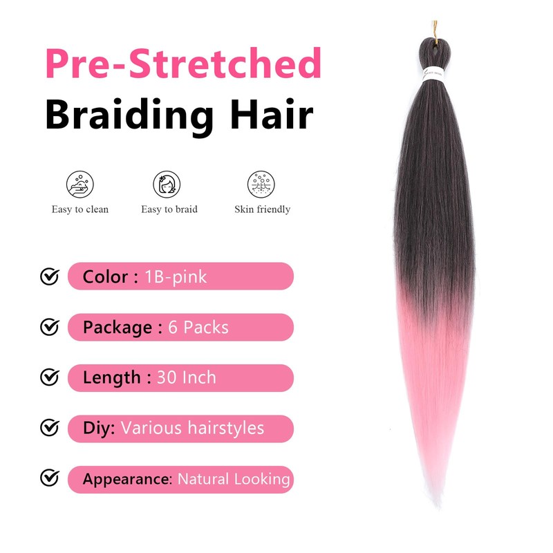Braiding Hair Pre Stretched - 6 Packs Prestretched Braiding Hair 30 Inch Ombre Braiding Hair Itch Free Yaki Synthetic Hair Extension for Braids (30 Inch(6Packs), 1B/Pink)