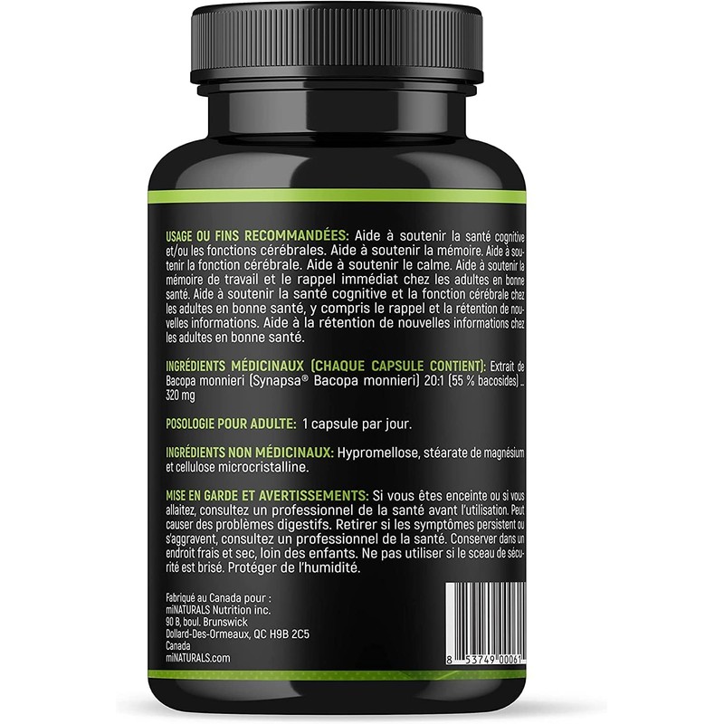 - MADE IN CANADA: Our nootropic supplement containing Synapsa (Bacopa monnieri) is formulated to be suitable for a diverse range of diets. The capsules are vegan, gluten-free, GMO-free, and suitable for vegetarians to ensure that it can be enjoyed by as many people as possible. Made in Canada in a cGMP certified, Health Canada facility.