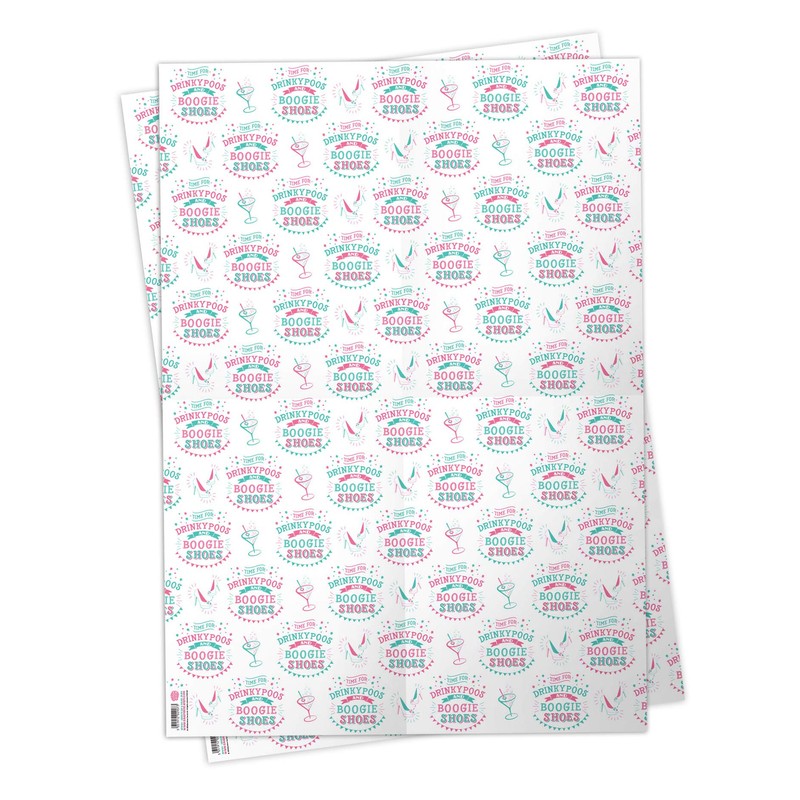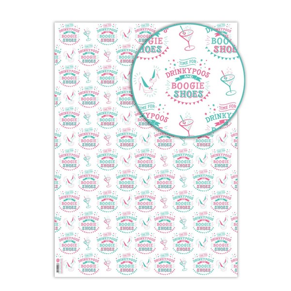 Brainbox Candy - 2 Sheets of Funny 'Time For Drinkypoos & Boogie Shoes' Birthday Wrapping Paper - Wrap For Her Girl Friends Besties - Folded, Quality Wrap