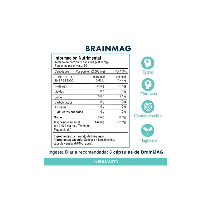 Brainmag L-treonato De Magnesio Newmanity 180 Caps Sabor Sin Sabor