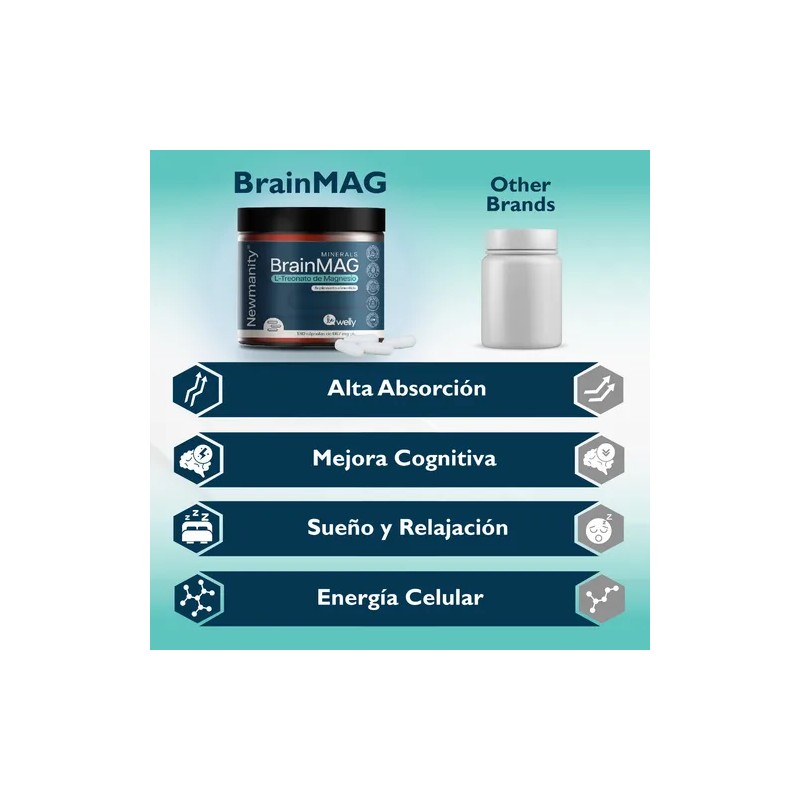 Esta forma única de magnesio penetra fácilmente la barrera hematoencefálica para brindar mayor absorción y beneficios directos al sistema nervioso central 🧬🧠.