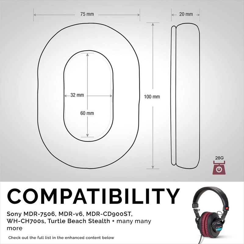 Brainwavz replacement earpads, for use with the Sony MDR 7506, V6 and CD900ST headphone models, use our standard, hi-quality protein PU leather fabric for comfort and durability. On the inside sits a layer of hi-grade memory foam padding, giving un-matched support, better isolation, longer pad life and more comfort than you will ever need.