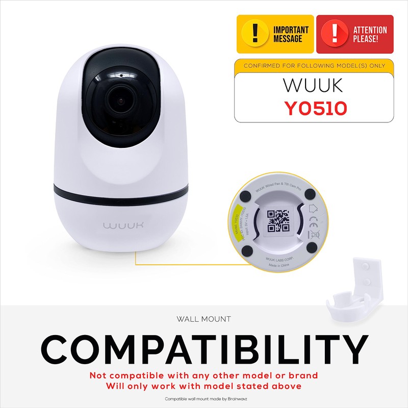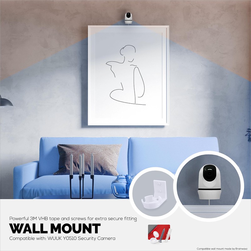 - WALL MOUNT HOLDER: Mounting bracket compatible with WUUK Y0510 Wi-Fi security Cameras, easy install, screw or stick-on. Mount your camera on any vertical surface for better viewing angles, plus it's out of the way and won't get knocked or accidentally moved. This product is manufactured and designed by Brainwavz, this product is compatible with WUUK Y0510 Camera.