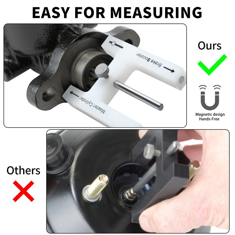 Do you feel that you can't stop the car in time even though the brakes are applied to the bottom, or that the car is stopped when the pedal is gently pressed? Maybe your master cylinder and brake booster are not properly adjusted to each other. There's no need to spend a lot of money on repairs, but easily and accurately adjust the position of both with this tool to achieve perfect, comfortable, and safe braking.