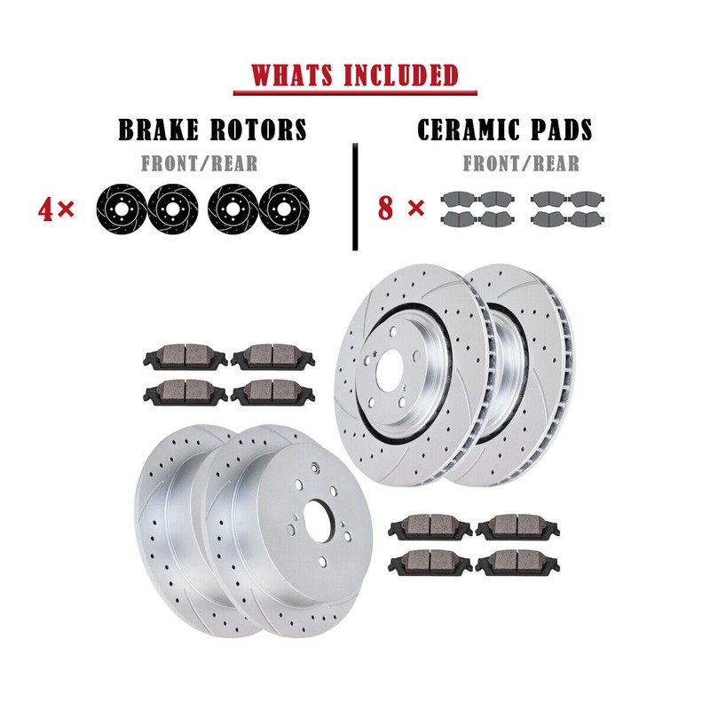 Front and Rear Brake Rotors Pads Kit for Toyota Highlander 14-19 Slotted Brakes