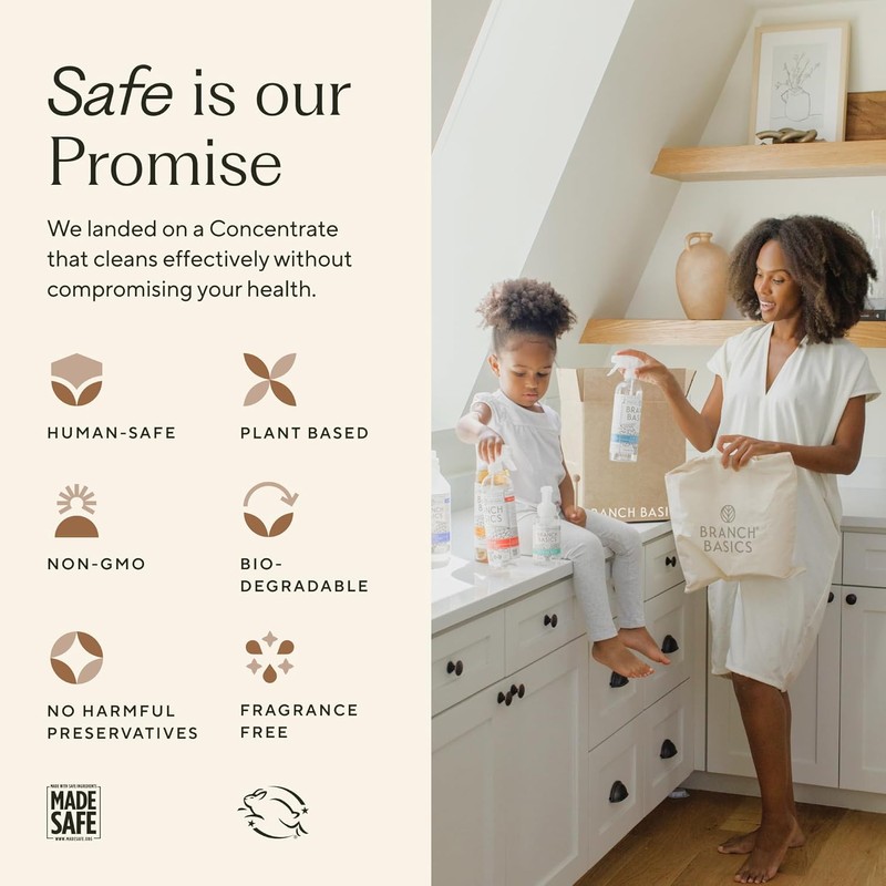 - REUSE & REFILL FOR SUSTAINABLE CLEANING: Keep your cleaning routine sustainable by refilling the Branch Basics cleaning bottles (sold separately) with Concentrate! Simply add water and Concentrate to create more cleaning solutions, reducing waste while maintaining a safe and effective home environment. One bottle of Concentrate can create multiple cleaning products at different dilution ratios, making it a sustianable and cost-effective way to maintain your cleaning routine.