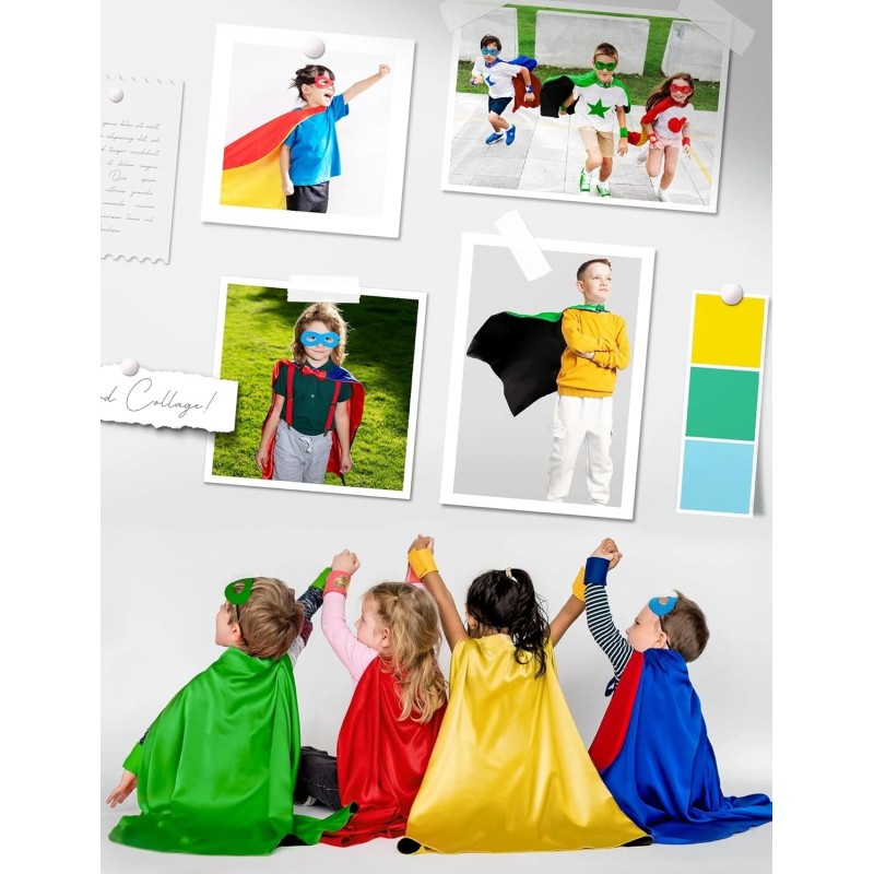 Children love their superheroes and nothing excites a kid more than pretending to fly through the air like Superhero. After kids wore our capes, they would imagine to fight with robber and save our beautiful world. 27.5 x 27.5 inches in size, suitable for children aged 3-12 years, with an elastic band on the felt masks that can be adjusted for the perfect fit. Made of soft and safe glossy satin material, these capes are comfortable. The best part about our capes is that they are reversible with dual colors, providing two different designs to choose from. Kids can also unleash their creativity and imagination by drawing, printing, or customizing the capes however they like. These capes make excellent gifts for kids to cosplay in Birthday Party, Halloween Dress Up Costume, Christmas Party, Costume Party, Team Spirit Building, Vacation Bible School, Role Pretend Play, 100th day of school celebration, Festivals, Themed Party Costumes, Career Themed Party, Everyday Play, and so on. With a variety of superhero designs to choose from, kids can play a different superhero every day of the week. These capes stimulate imagination and creativity, allowing kids to explore new worlds and have fun with their friends. Our Superhero Capes and Masks are the ideal presents and perfect party favors for kids, great for birthday goodie bags, incentives for students, and ornaments for parties. For the best look, all capes should be ironed on low heat before use and hand washed in cold water and air dried. Masks can be wiped clean with a damp towel. Order now and let your little superheroes save the day! Size: 27.5×27.5 inch,Perfect for 3-12 years old kids Packing List: 1* Double-Sided Colors Superhero Cape 1* Superhero Mask