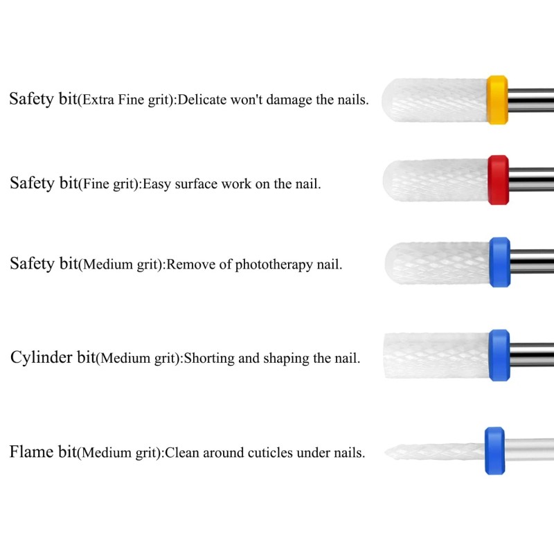 • 【10pcs Ceramic Drill Bits】There include Fine , medium , coarse and Special rough grinding pattern 4 ceramic drill bits texture can adapt to different strengths to accomplish varied professional nail jobs.