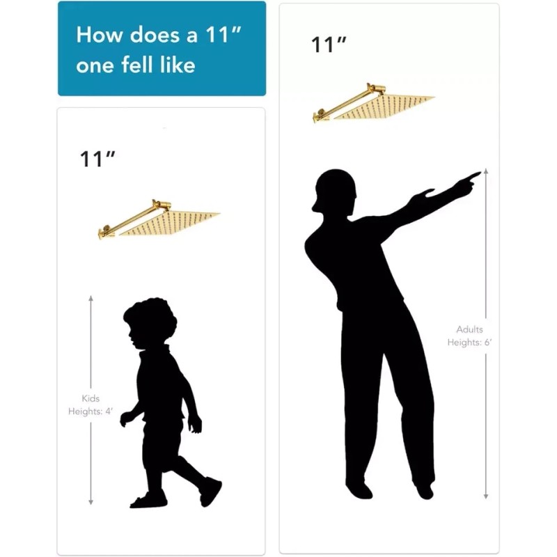 11" Egyptian Gold Adjustable Shower Head Extension Arm, Solid Brass Easy Install
