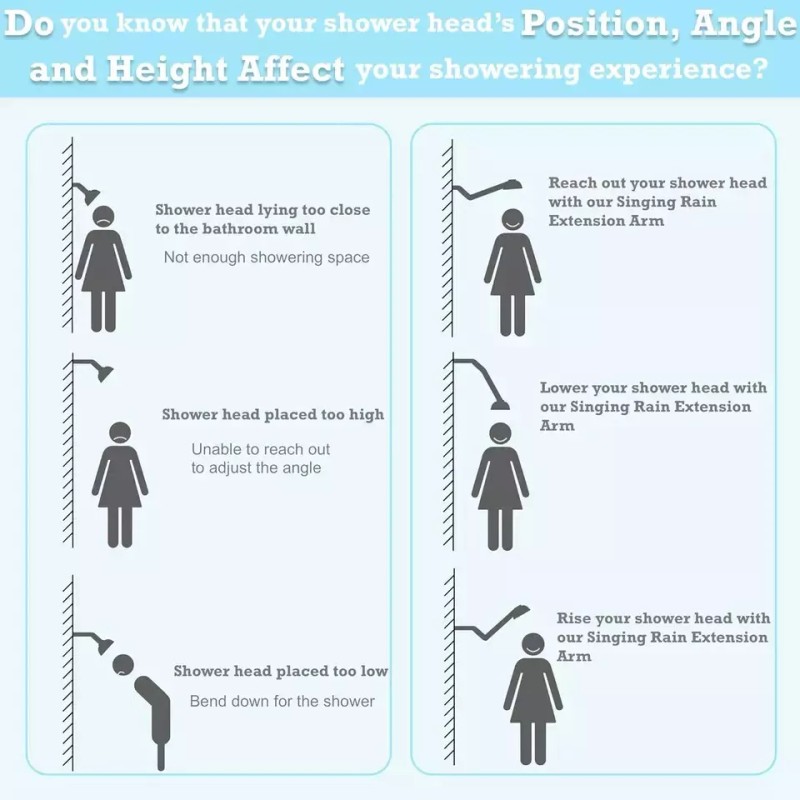 - Solid Material: The extension arm is made from solid brass, which ensures your shower experience is durable and enjoyable. It is strong enough to hold your fixed shower head however you want and do not need to worry about dropping it while you are adjusting the angle.