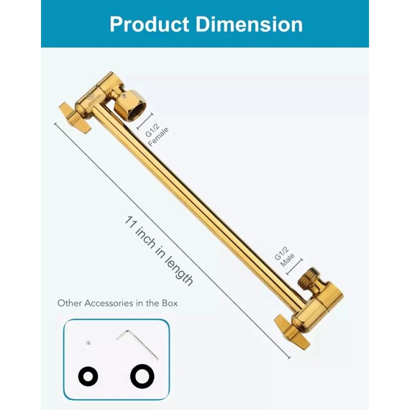 - 360° Adjustable and Universally Fitted: The height and angle of the shower arm can be simply adjusted to fit everyone's need. The entire product is made from solid brass with G1/2 thread's size, which allows you to pair any shower head on the market without any questions.
