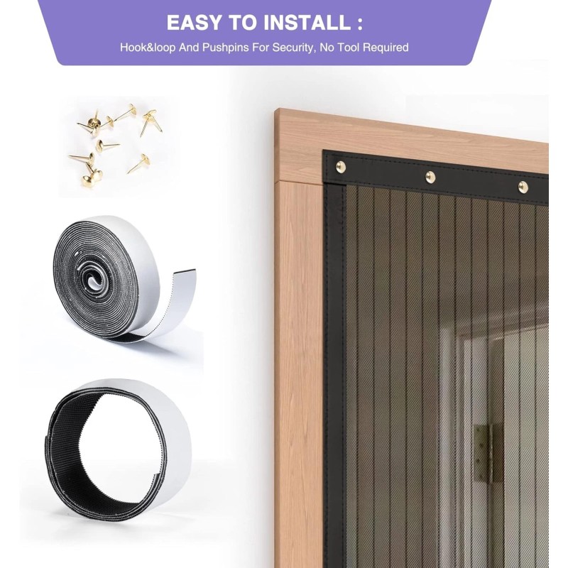 - 🏡【Fast Installation Screen Door】Comes with completely assembly kit with step-by-step instruction for easily installation. Full frame hook&loop enable you to remove the door net screen with magnet anytime you want. To secure the door net screen with magnet into its place much more stable, just use the included extra push pins.