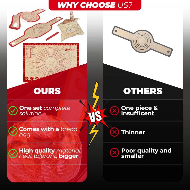 Branded 3PCS Silicone Bread Sling & Baking Mat Set – Reusable Non-Stick Sourdough Kit