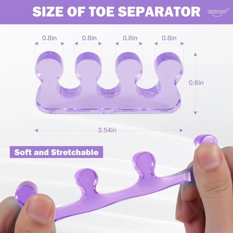 - THSTOIC TOE SEPARATOR】- THSTOIC toe separator is a practical tool designed for both pedicure and nail beauticians. Crafted from soft gel silicone, it offers a gentle and comfortable touch, suitable for various toe shapes. This toe separator ensures the separation of toes during the toenail process, preventing nail polish from sticking together or smudging, thus facilitating a smoother and more relaxed manicure experience.