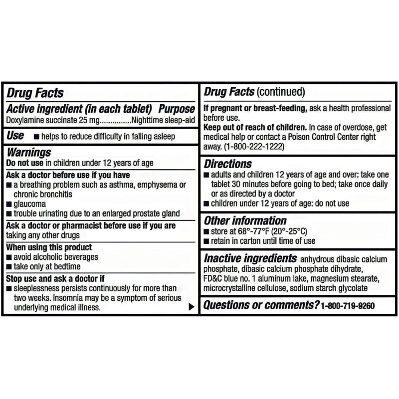- Ingredients: Doxylamine Succinate