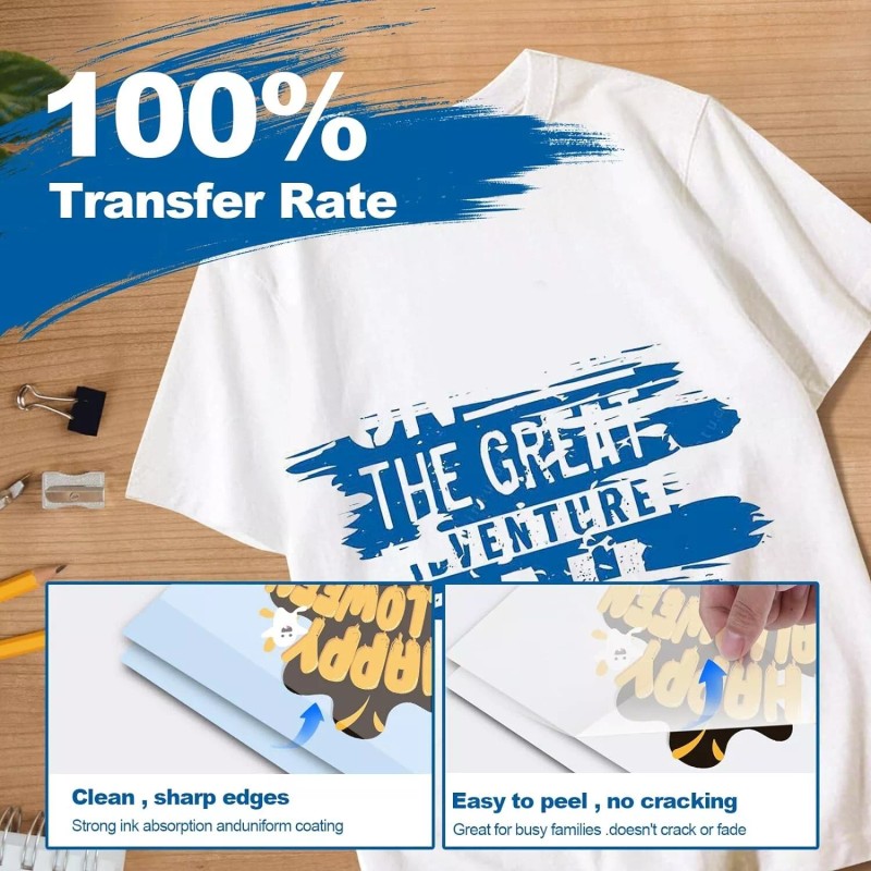 - ✅【VERSATILE & WIDE COMPITABILITY】Our DTF transfer film is work for all colored garments including dark black light white colors etc, and also for all material fabrics including Cotton, Jeans, Leather, Nylon, Canvas, Polyester, etc.