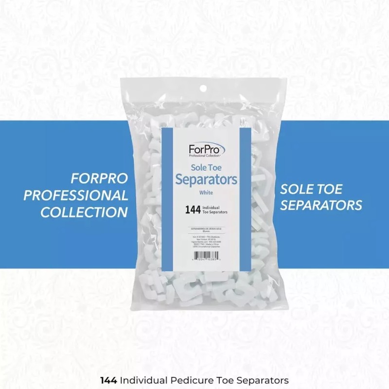 Branded ForPro Sole Toe Separators, White, Individual Toe Separators for Pedicures, 144-