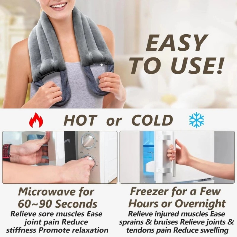 - Versatile and Flexible: This microwavable heating pads for heat therapy is so soft and flexible to conform to your body, delivers soothing heat therapy to your neck, shoulders, back, arms, leg, ankle, and knee, etc. Great help with acute and chronic pain relief. Microwave neck wrap for pain relief safely to obtain soothing moist heat therapy to reduce inflammation, stress, tension, and pain by promoting circulation.