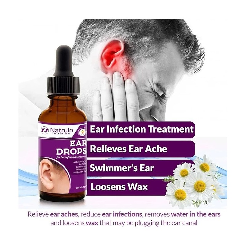 Branded Natrulo Natural Ear Drops for Ear Infection Treatment - Homeopathic, Herbal
