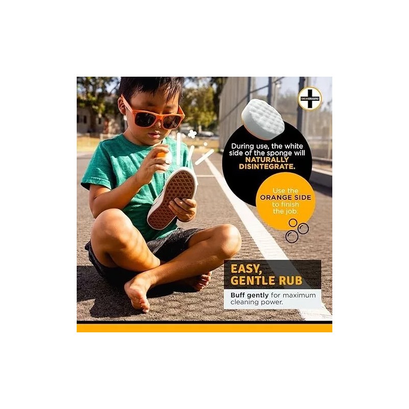 - SIMPLE AND GENTLE APPLICATION - Achieve optimal cleaning by gently rubbing the SneakERASERS sponge on your shoe's sole. The smoother and softer your strokes, the more effortlessly the marks will come off. To enhance results, avoid applying excessive pressure or vigorous rubbing.