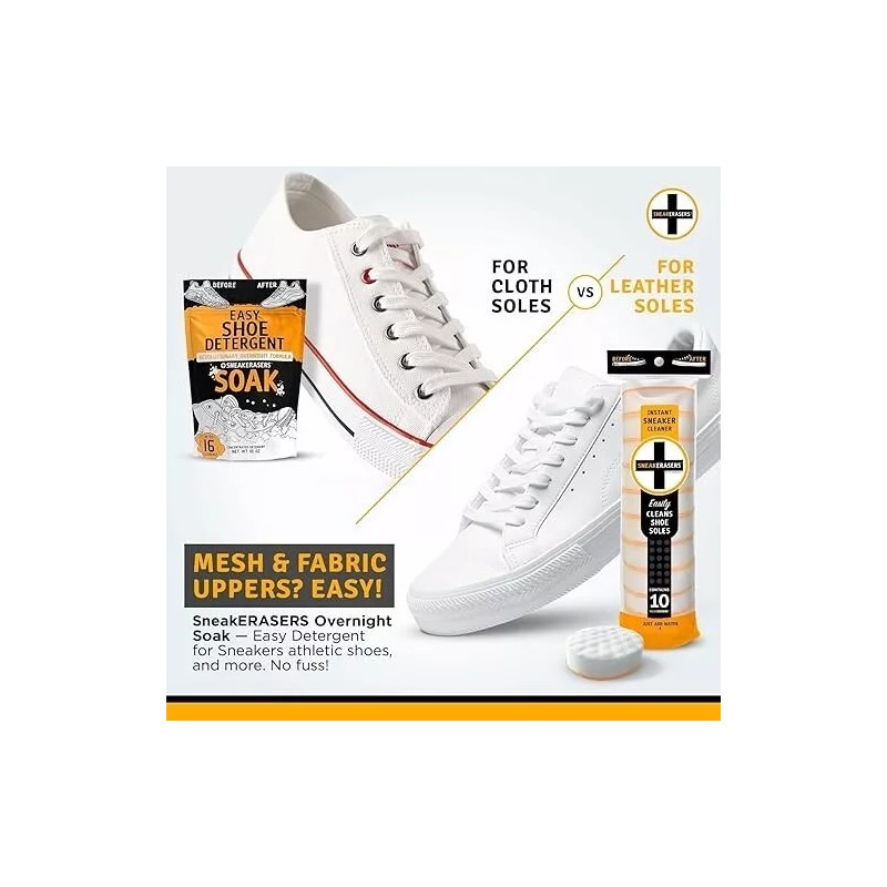 - MULTI-PURPOSE USAGE - Whether you have tennis shoes, basketball shoes, gym shoes, or white canvas and leather sneakers, SneakERASERS Instant Sole and Sneaker Cleaner is the ideal solution. Maintain the pristine appearance of your shoes.