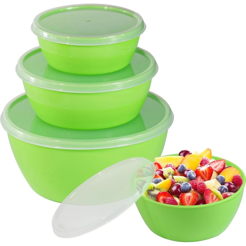 Branded Set of 4 Plastic Prep Bowls with LidsMicrowave and Dishwasher Safe,Ideal for Ba